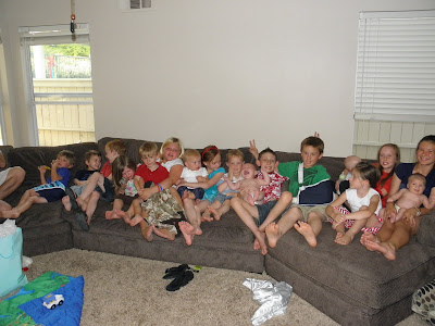 We got ready for the morning in our festive attire and set out for the Spectrum in Irvine, to do some window shopping. When we had had enough we headed for Buffalo Wild Wings, one of Spencer's most favorite restaurants, which we do not have in Utah. We ordered a whole bunch of wonderful wings and filled ourselves to the brim. We then met up with my cousins at Kim's house and enjoyed the rest of the evening together. We grilled and ate DELICIOUS brats, "man pasta" and many other wonderful foods. My grandma Richards, in Utah, sent us money to buy a cheesecake and we all devoured it! We watched the fireworks in Ladera and had an enjoyable time.